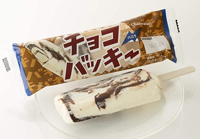 2018年3月1日に菓子専門店であるシャトレーゼが発売した「チョコバッキー」。バニラアイスの中に不均等に層状に入ったチョコレートは、食べる部位ごとにいろいろな食感で楽しませてくれます。1本(66ml) 158kcalです。